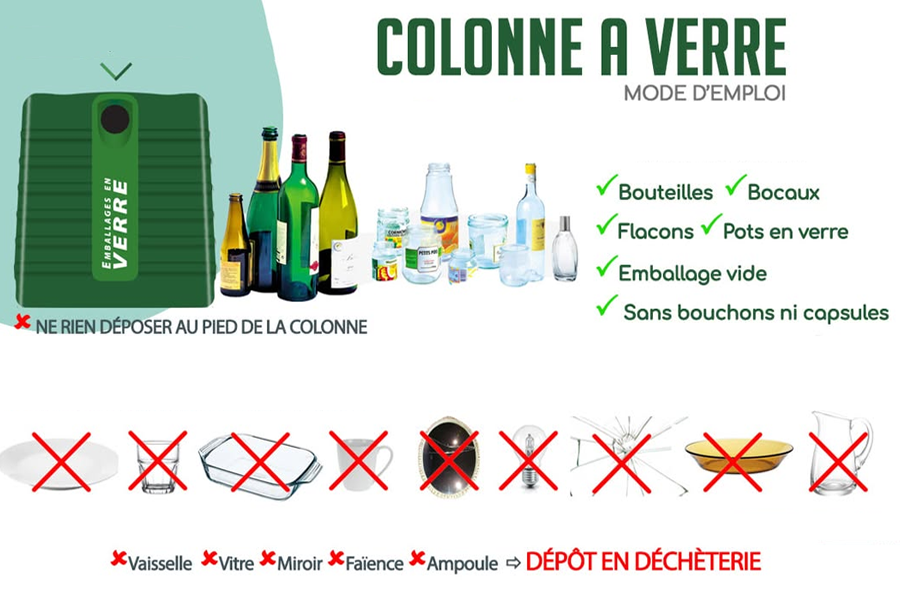 En France, le verre est recyclé depuis 1974. Premier maillon de la chaîne du recyclage, le consommateur est responsable de la quantité mais aussi la qualité du verre collecté. En triant rigoureusement le verre d’emballage, nous sommes assurés qu’il sera recyclé à 100% et à l’infini. Donc attention de ne déposer dans les conteneurs municipaux prévus à cet effet uniquement les verres d’emballage (bouteilles, pots, bocaux et flacons).